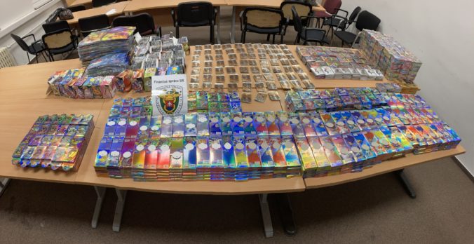 20.4.2023 (SITA.sk) – Bratislavskí colníci zaistili 3508 balíkov napodobenín zberateľských kartičiek Pokémon v hodnote viac ako 22-tisíc eur. Ako informovala hovorkyňa Colného úradu (CÚ) Bratislava Drahomíra Adamčíková, hliadka príslušníkov finančnej správy z CÚ Bratislava zasahovala v uplynulých dňoch v areáli na ulici Stará Vajnorská.