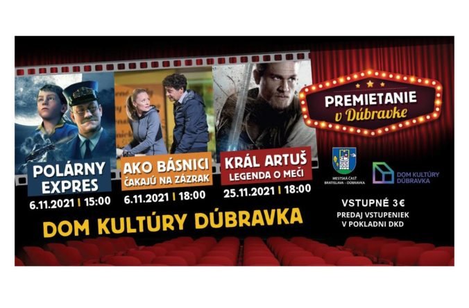 3.11.2021 (Webnoviny.sk) – Dom kultúry Dúbravka prichádza s novinkou, premietaním filmov na veľké plátno v červenej sále. Ide o akýsi malý návrat kina, ktoré v priestoroch kultúrneho domu kedysi fungovalo. Počas novembra naplánovalo oddelenie kultúry tri premietania.