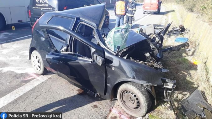 Ako informovala prešovská krajská polícia, vodič Fiata Punto prešiel do protismeru a zrazil sa s linkovým autobusom.