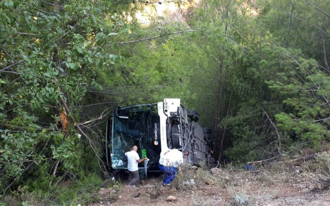 24.7.2019 (Webnoviny.sk) – Pri pobreží Stredozemného mora v Turecku zišiel z cesty autobus s turistami a prevrátil sa. Zranenia utrpelo najmenej 25 osôb, informovala štátna tlačová agentúra Anadolu. Nehoda sa stala v utorok v blízkosti obľúbeného dovolenkového strediska Kemer v provincii Antalya.