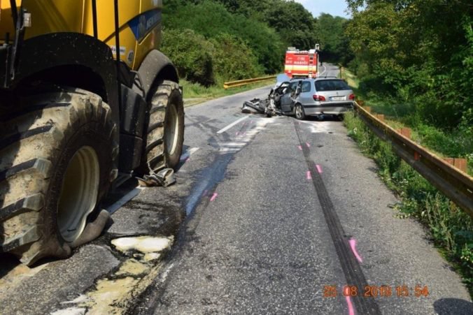 26.8.2019 (Webnoviny.sk) – Pri obci Tešmak v okrese Levice sa zrazilo osobné auto s kombajnom. Päťdesiatšesťročný vodič Peugeotu 406 zrejme v zákrute neprispôsobil rýchlosť a keď v protismere uvidel kombajn začal prudko brzdiť.