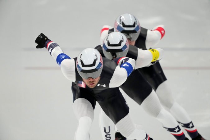 Američania boli hlavní ašpiranti na najcennejší kov aj v utorok, keďže sú držiteľmi svetového rekordu výkonom 3:34,47 min z decembrového Svetového pohára v americkom Salt Lake City. Finále im však napokon ušlo, keďže v semifinále prehrali s Rusmi, ktorí napokon brali striebro po prehre s Nórmi.