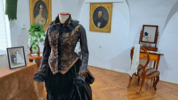 „V tom období sa hojne používali krinolíny, sukne boli našuchorené, nosilo sa niekoľko vrstiev na sebe. Používali sa korzety, rôzne vypchávky sukní, ako bola napríklad turnýra v zadnej časti sukne. Sukne sa vypchávali z konského vlásia, aby mali bohatší a honosnejší tvar,“ opísala riaditeľka múzea.