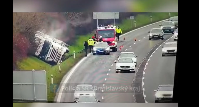 16.12.2022 (Webnoviny.sk) – Na diaľnici D1 v smere z Trnavy do Bratislavy sa prevrátil kamión s býkmi. Ako informuje bratislavská policajná hovorkyňa Jana Šimunková, udalosť sa stala dnes krátko pred 14:00 na 18. kilometri diaľnice.
