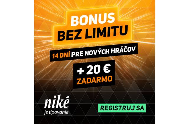 To však stále nie je všetko. Po úspešnej registrácii stále platí, že okrem Bonusu bez limitu, vám Niké na vaše konto pripíše automaticky 20 € zadarmo vo voľných tiketoch.