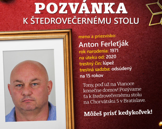 Zdroj: Webnoviny.sk – Polícia pátra po utečencoch originálne, k štedrovečernému stolu pozýva aj Antona Ferleťjáka © SITA Všetky práva vyhradené.
