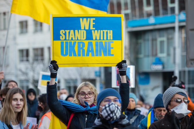 Zhromaždenie Mier Ukrajine: Za vašu aj našu slobodu – Spolu zvíťazíme (fotografie)