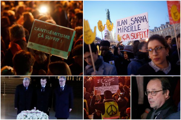 Vo francúzskej metropole sa k protestnému zhromaždeniu, ktoré viedol premiér Édouard Philippe, pripojili aj exprezidenti Francois Hollande a Nicolas Sarkozy. Prezident Emmanuel Macron spolu s parlamentnými lídrami navštívil v Paríži múzeum holokaustu, kde si uctil obete minútou ticha.