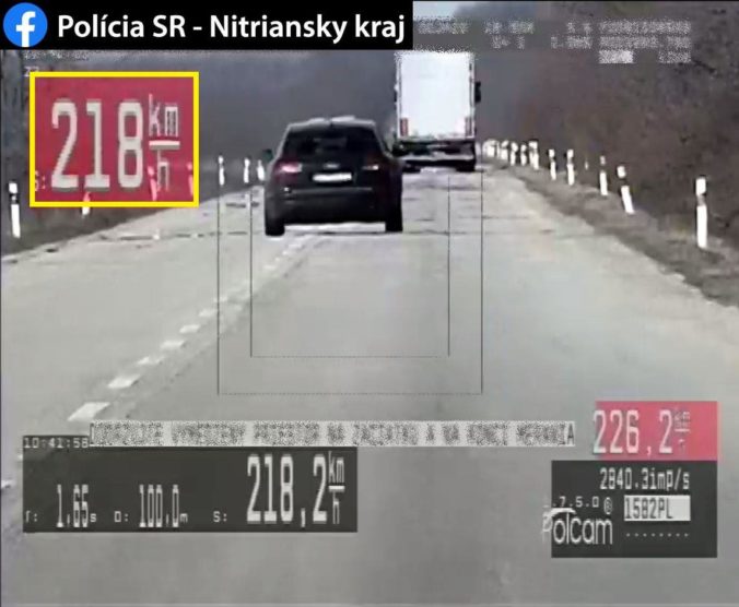 Ako informovala nitrianska krajská polícia, dôchodca na ceste druhej triedy obehol policajtov rýchlosťou 218 km/h. Tento priestupok ho vyšiel na 800 eur.