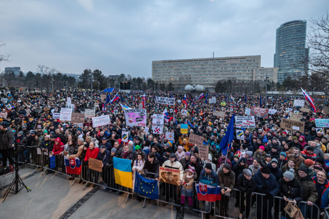 Viac k témam: Americký prezident, Ficova vláda 2023 – 2027 (koalícia Smer-SD Hlas-SD SNS), Premiér Slovenskej republiky, Protesty, Slovensko je Európa, Zbierka Munícia pre Ukrajinu, zhromaždenia